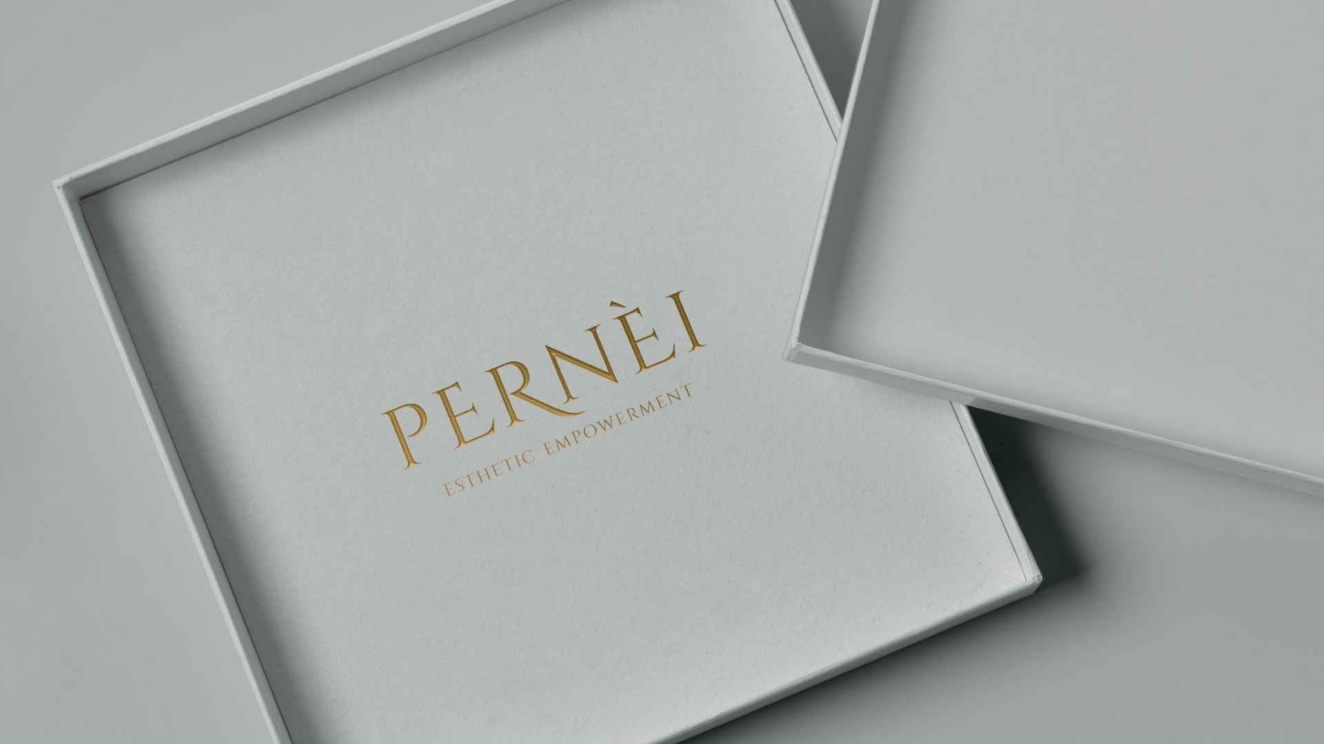 PERNÉI noun  /pern – ey / słowo inspirowane nazwą miasta we Francji. Marka działające w obszarze kosmetologii i medycyny estetycznej oraz branży modowej, gdzie głównym zadaniem brandingu było połączenie estetyki tych obszarów przy jednocześnym podkreśleniu wartości premium.